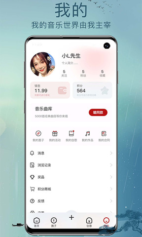 1、个人音乐主页:我的创作,我的歌词,歌单收藏。