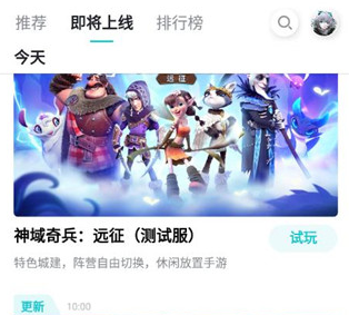 4.发现:发现板块相当于游戏库,主要以类型、新游和测试区划分板块。