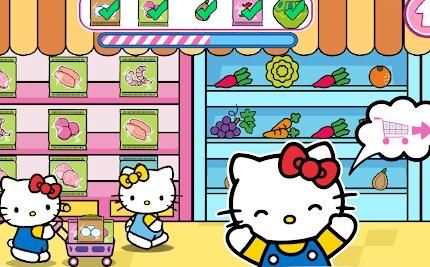 2.卡通的游戏画风,精彩有趣的游戏体验,和凯蒂猫以及小伙伴们一起去购物。