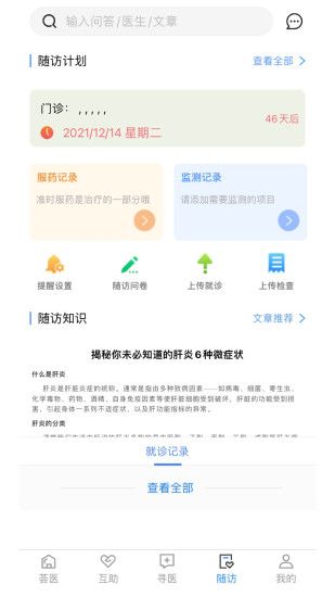 荟医随访也就是荟医健康软件,让用户可以随时查看检查报告、历史病历等健康信息,还可以了解健康小常识,享受方便的医疗体验。