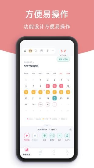 柠檬小月是一款非常实用的生理期记录软件。软件的界面设计简洁清新,能够提供用户舒适的使用体验,且操作简单便捷,用户每天只需要花几分钟时间完成生理期的记录,并及时保存所有的生理期数据。柠檬小月软件还会根据用户提供的数据进行分析,准确预测下一次生理期的到来时间,帮助用户提前做好准备。有需要的用户,快来下载吧!