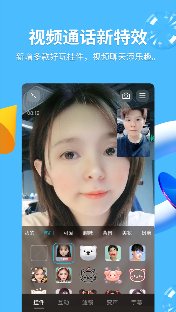 5. 视频通话:支持高清视频通话,用户可以与好友进行面对面的视频交流,更加直观和真实。