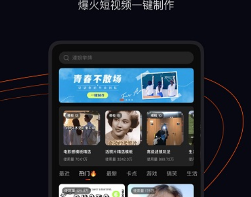 3.拥有海量模板下载,涵盖多用户群体的风格,一键剪出同款火爆网络的短视频,助作品上热门。