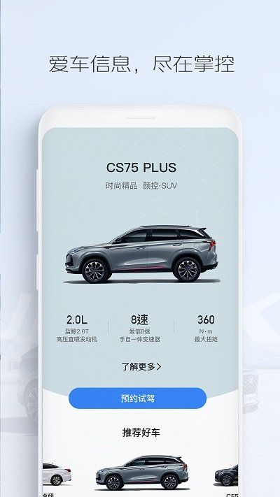 长安汽车app官方版是一款为长安车主和潜在车主提供的专业软件,为用户提供全面的车辆服务和购车咨询。用户可以通过该app了解长安汽车的最新车型资讯、配置详情以及价格信息,方便用户进行购车决策。该app还提供车辆保养和维修服务,包括预约维修、保养提醒、远程故障排查等功能,用户可以随时随地管理自己的爱车,有需要就快来下载安装吧!