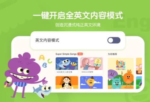 1.通过英文儿歌、探索认知、动画故事、字母词汇等各方面给孩子更好引导。