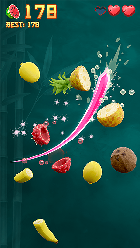 2.玩家需要使用手指滑动屏幕来切割水果,一刀斩碎水果,得分增加。