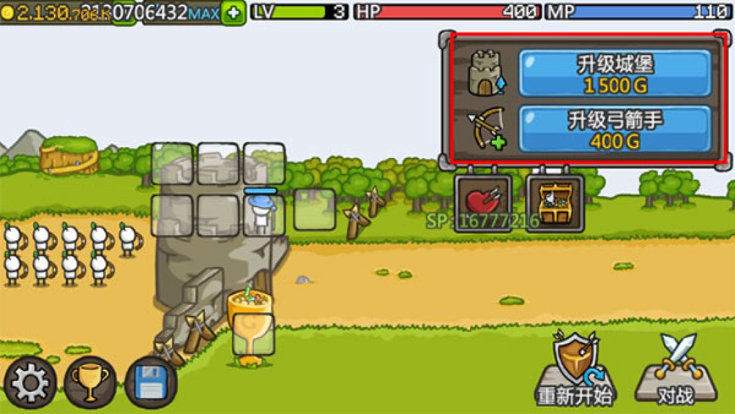 5、通过不断升级城堡、训练士兵和建造塔楼,就能够轻松通关。
