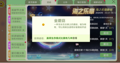 获得赠送金蘑菇的主要方法是通过参与活动,游戏会定期更新各种活动,完成这些活动即可获得一定数量的赠送金蘑菇。