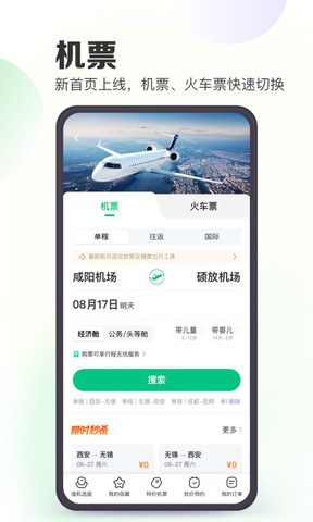 同程旅行APP还提供了旅行社交功能,用户可以在APP上找到旅行同伴、分享旅行经验、交流旅行计划等,与其他旅行者进行交流和互动,增加旅行的趣味和乐趣,用户可以通过搜索并预订国内外航班的机票,包括经济舱、头等舱等多种舱位选择,并提供实时的航班信息和预订确认。