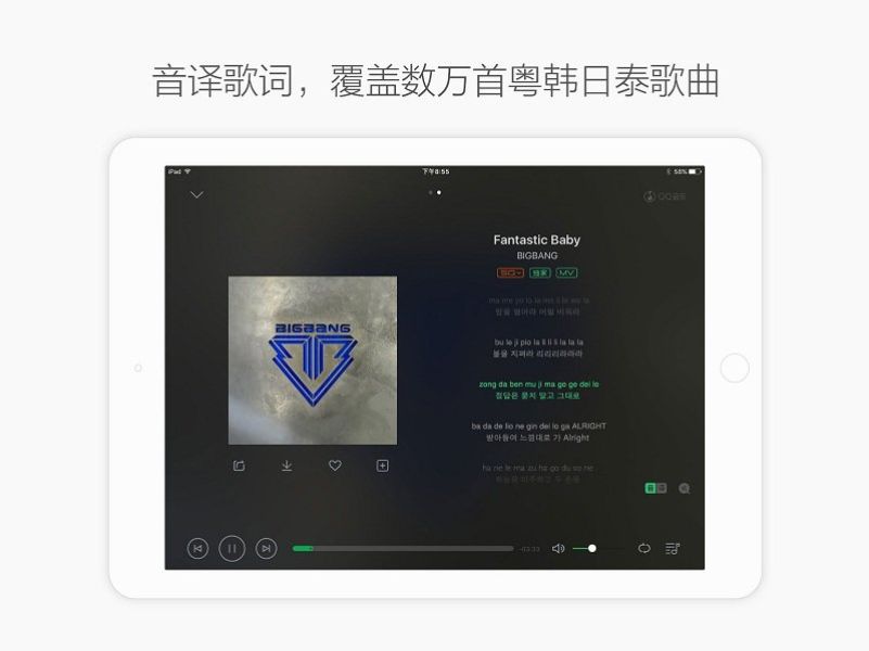 qq音乐hd版是一款专为平板用户设计的便捷音乐软件,用户可以直接使用QQ扫码轻松登录,同步之前的音乐播放与收藏。享受更个性化的服务。此外,官方还为用户提供了最新推出的弹一弹等功能,现在用户还能在桌面上展示歌词,让用户一边听歌一边跟随歌词跳动,更深入地感受音乐的魅力。喜欢的话就快来下载安装qq音乐hd版吧!