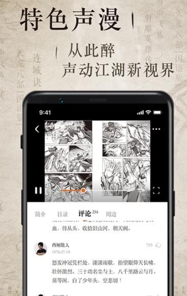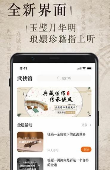 3.听武侠,聊江湖,这里不只听书,还有丰富的金庸武侠趣谈和周边资讯。