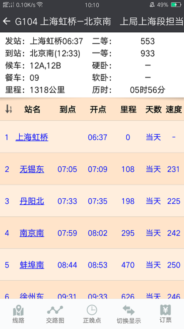 4. 正晚点查询:查询指定车次的正晚点信息。