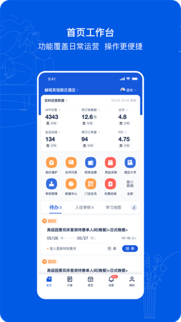 携程民宿(携程eBooking)不仅提供了丰富的房源信息和预订服务,还提供了后台管理和审核、结算、点评等功能!