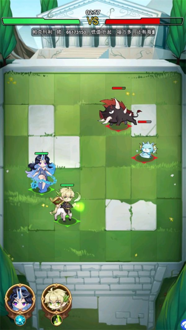 1、Q版游戏画风,清新明亮的场景画面,丰富多样的人物形象。