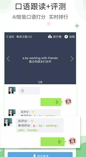 2.AI智能评分,老师纠正发音,还有实时排行榜,让孩子在轻松快乐中学口语。