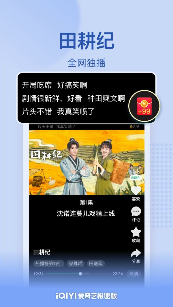 爱奇艺极速版是一款非常实用的免费看电视剧app,提供了丰富的高清视频资源,包括各种热门、经典和有趣的影视作品。用户可以随时随地享受流畅便捷的观影体验,并且通过完成任务获得金币,进而兑换更多权益。此外,爱奇艺极速版软件还提供了许多独家影视资源,让用户在观影的同时,享受到更多的乐趣和便捷。喜欢的用户,就来下载吧!