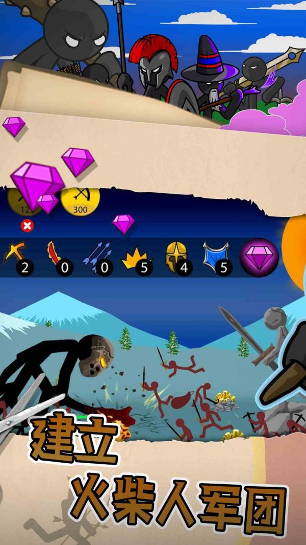 3、以灵活的战斗技巧,参加战争,与火柴人英勇作战,挑战未知,创造未来。