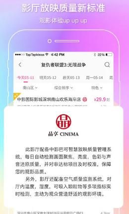 1.GPS可自动定位离您最近的中影国际影城,方便您的出行安排。