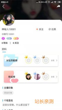 6、选择进入个人主页,查看所获粉丝数以及好友数,选择在线充值