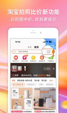 淘宝是亚洲最大的综合性网上购物平台。其中,淘宝商城整合了数千家品牌商户,提供100%的质量保证商品、7天内无理由退货的售后服务、购物点现金返还等优质服务。软件依托淘宝强大的优势,整合团购产品,整合淘宝商城,为用户提供最新的日常购物信息,还有更多的搜索价格比较、订单查询、购买、收集、管理、导航等功能,为用户带来方便快捷的手机购物体验。淘宝浏览方便,购物愉快,用户可以随时随地查询管理自己的订单,物流信息,操作简单,使用方便。并且软件产品丰富,无论用户是想买零食饮料,还是家居百货,在购物车中结算更方便,操作更简单。软件还支持指定要购买的商品,可以直接拍照识图搜索,快速为用户找到同款,直接购买超级方便。作为手机必备软件之一,赶快来下载吧!