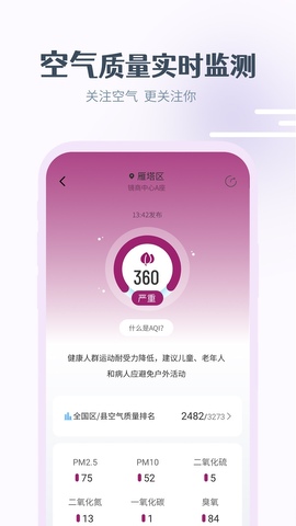 3.空气污染指数:小时空气污染指数监测和全国空气质量排名,预测未来7天空气指数,关注空气质量,关心健康。