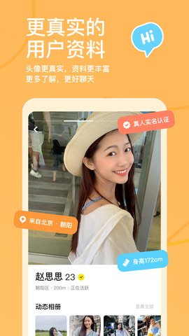 探探是一款集附近人、聊天、交友、社交于一体的社交APP,专注于与陌生人交朋友,以最简单的方式找到你喜欢的人,你不必担心被陌生人骚扰。探探将根据您当前的位置、地理距离和性别偏好,实时推送您周围有趣的人。并在软件中拥有大量真实的玩家,通过图片识别+人工审计双重验证,为用户提供最好的安全保障。探探即时匹配开启了相互测试的大冒险,如果匹配不成功,你就不必气馁。还有更多好看有趣的年轻人,总有一个适合你的!