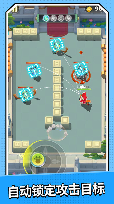 游戏中卡通角色选择,解锁弓箭道具武器,满地图走位射击敌人,提升战力组合技能,完美通关。
