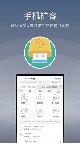 【可扩容】支持管理查看U盘资源,拓展手机存储空间。