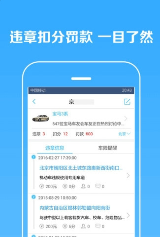 1.违章查询:覆盖全国多个城市,实时更新车辆违章查询数据。
