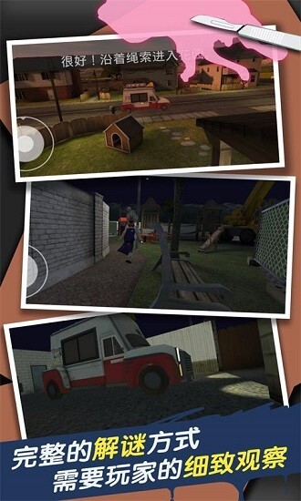2.研究路线图,避开怪人的视线,用道具快速解谜,找到需要的钥匙,快速逃跑;