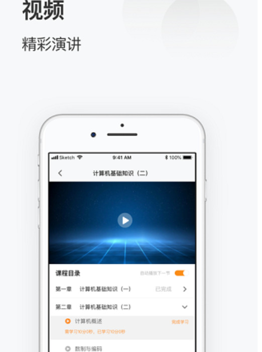 2.同步学习记录:打造云学习服务,所有课程进度跨终端同步,学习进度无缝衔接。