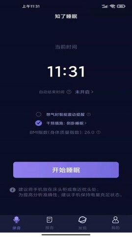 方便用户使用智能手机对睡眠呼吸声分析,预测,可监测睡眠期间打鼾和呼吸暂停的情况。