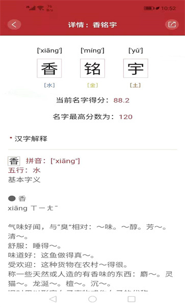 3.专业命名,专业大师解名,一键查询您的姓名拼音、笔画、五行、吉凶、分析字形意义,轻松分析名称。