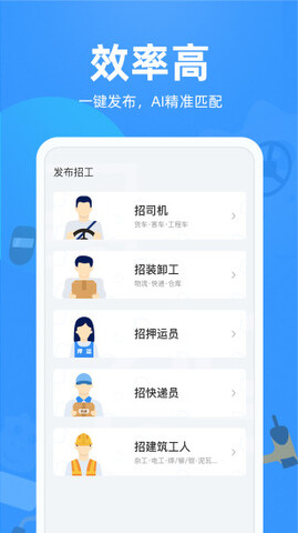 4.高效找工作:每天更新1万名司机.押运员.装卸工.快递员招聘信息,求职者可以筛选联系人,也可以发布活名片曝光,提高找工作的效率。
