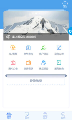 内置通知公告、水电气缴费、缴费记录、网店查询、服务指南、水电气宣传等功能板块,满足一切生活所需!