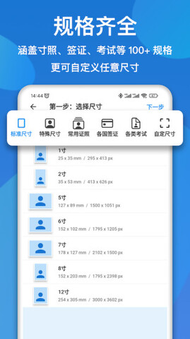 证件照快拍app的拍摄功能非常的优秀,独家人脸高清技术,确保你的证件照高清又合格。让想要来这里的用户可以轻松拍下自己喜欢的照片。在软件上拍摄各种美照的用户可以自行设置证件照的大小,参数调整也方便,支持对背景颜色进行快速修改。并可以随时的去拍摄,还可以保存电子文件到手机本地文件,方便用户随时打印,节省了大量的时间和精力。证件照快拍app中不同尺寸规格的手机证件照都能够在这里进行制作,提供ai智能图像技术,方便快捷。