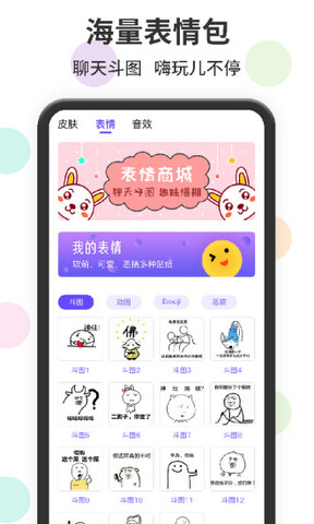 2.表情包除了常规的输入功能外,还集成了情感语录、图案字体等功能,完美适用于各种聊天场景。