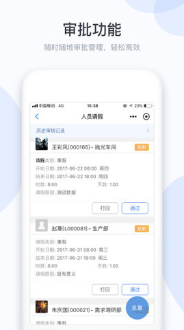 移动OA办公室提高审批和事务处理效率,帮助企业规范管理流程.提高执行力。