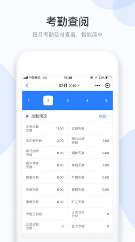 4.个人功能,支持蓝牙的使用.固定位置和无线WIFI进行移动打卡,支持出差打卡,允许关联出差备出差检查;