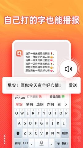 语音输入法app是一个很好用的智能型语音输入法。说话、说方言就能变成文字,软件能够精准识别20种方言转换成文字,说多快,打字就有多快。点一下文字消息就自动念给您听,同时还能读微信、读短信、读新闻、读小说、读评论等等。语音输入法app在输入的过程中可以点击播报,不管是发出的消息还是接收的消息都能播报,让大家在不方便打字的时候也能无所顾忌的和朋友发消息。不仅给用户带来极大的方便还能够节省超多的对话时间。