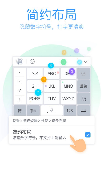 拥有海量清爽键盘皮肤,仿PC键盘的特色按钮以及炫酷的界面切换动态效果,给你舒心愉悦的心情。