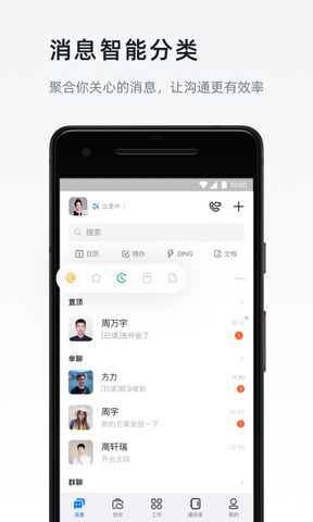 1.提供专注、高效、安全的即时通讯解决方案,使工作沟通更加顺畅。