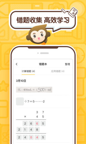 3.口算练习、手写作答、口算题涵盖学龄前及小学各年龄段学生,其中口算练习、垂直计算和单位转换可以手写回答。错误的问题也可以整理在错误的问题书中,有效地提高学习成绩。