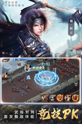 2.襄阳城战,三国英雄齐聚,三军玩家齐聚襄阳战地图,以夺取和守护襄阳城大殿为目标,不仅是国家间实力的对抗,更是对各国王执行决策的考验。