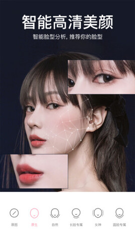 1.一键美颜.简单自拍:默认美容效果,通过简单的操作,轻松拍出完美的瘦脸.无暇肌肤.精致妆容一键解决。你可以在任何场景中快速自拍。