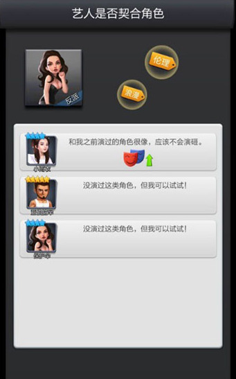 3.游戏性强,内容丰富,现实中的电影拍摄、明星运作、影视公司经营的游戏套路都搬到了手机上,玩家可以亲身体验影视圈的方方面面。游戏还通过电影奖项评选,票房竞争,粉丝互动等玩法贯穿影视公司经营的细节,强大的游戏性让你足够享受。