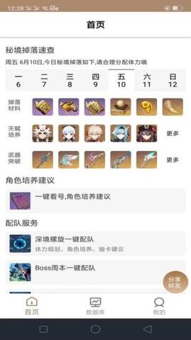 3.提供数据库查询服务,包括角色培训建议、角色策略、圣物和武器搭配、等级和人才突破的材料总结。