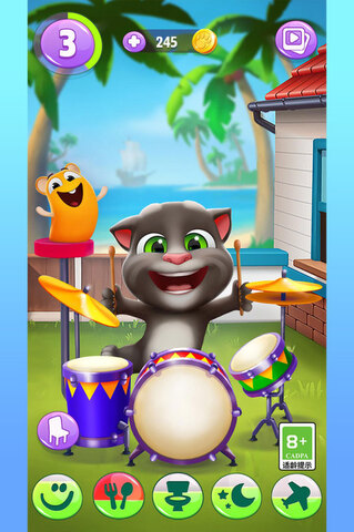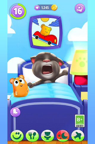 1.养育你专属的汤姆:和他玩游戏,喂他最喜欢的食物,带他上床睡觉。
