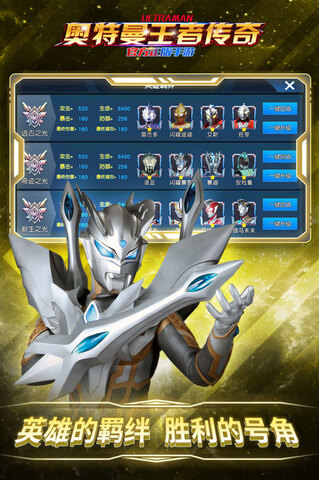 奥特曼王者传奇是一款全新奥特曼授权的回合制手机游戏,玩家将以奥特曼的身份拯救世界。你需要通过神奇的卡包一个接一个地召唤宇宙中著名的奥特曼和怪物,与强大的黑暗势力战斗,解锁神秘的情节,写下属于你的奇幻冒险故事。与此同时奥特曼王者传奇游戏中所有历代的奥特曼都完美地还原游戏,比如迪迦、赛罗、贝利亚、雷欧等。并将在战斗过程中插入一些和怪物之间的对话场景,为奥特迷带来冒险体验。更有经典的奥特曼角色,独家的技能动作,控制他们开始正义之战!