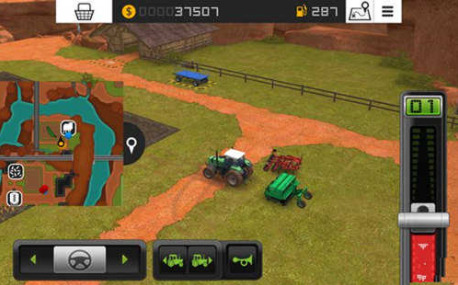 2.逼真的图形和农场环境、方向盘、按钮和倾斜控制、作物收获、耕作、播种。